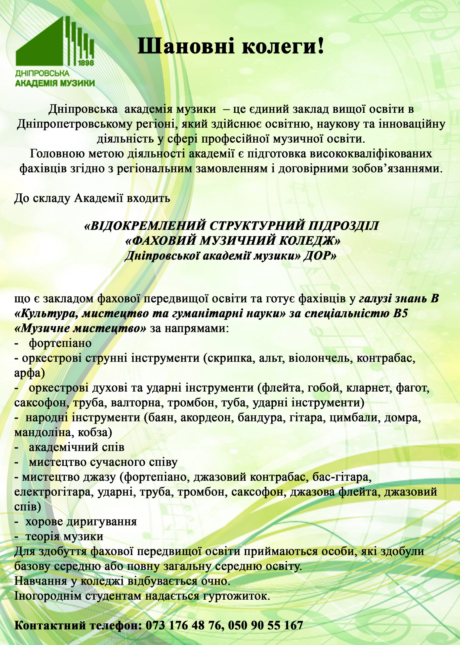 ПРО ВСП ФАХОВИЙ МУЗИЧНИЙ КОЛЕДЖ
